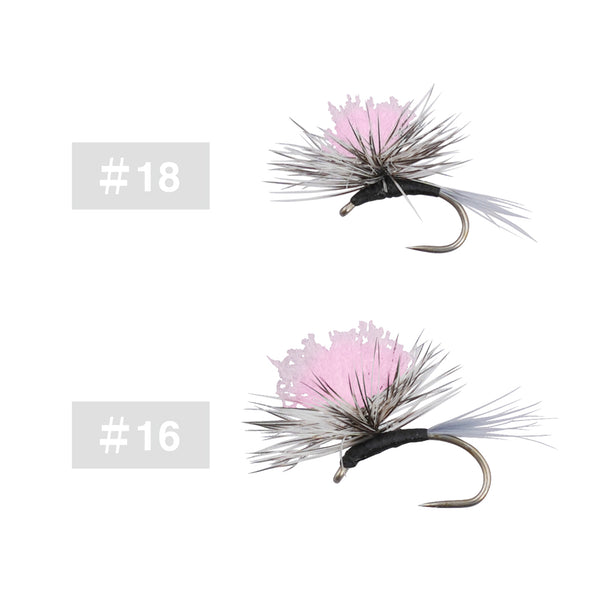 パラシュートタイプのドライフライ(浮くタイプ)を採用。魚へのダメージが少ないバーブレスフックを使用しました。※手作業で仕上げているため個体差がございます。あらかじめご了承ください。